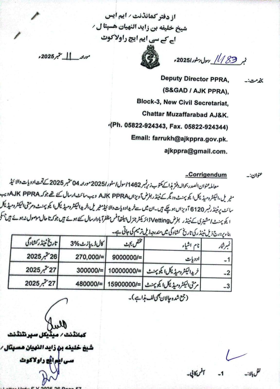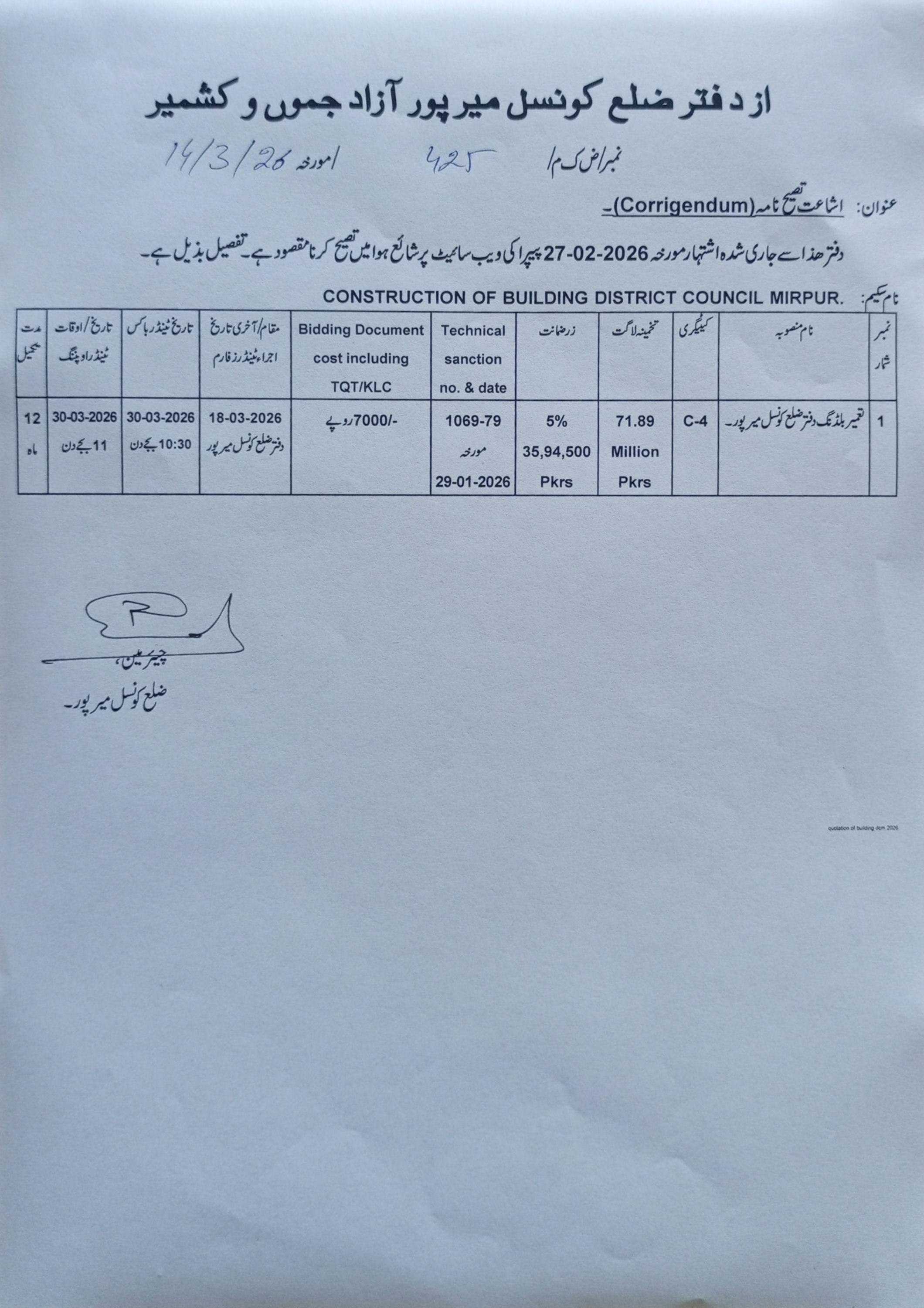 31-10-2025 | 09-12-2025 | Close | Corporations | Municipal Corporation Muzaffarabad | Download File