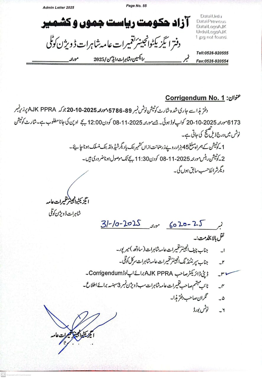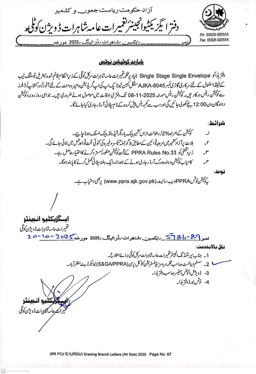15-10-2025 | 04-11-2025 | Close | C&W | Highways Division Muzaffarabad | Download File