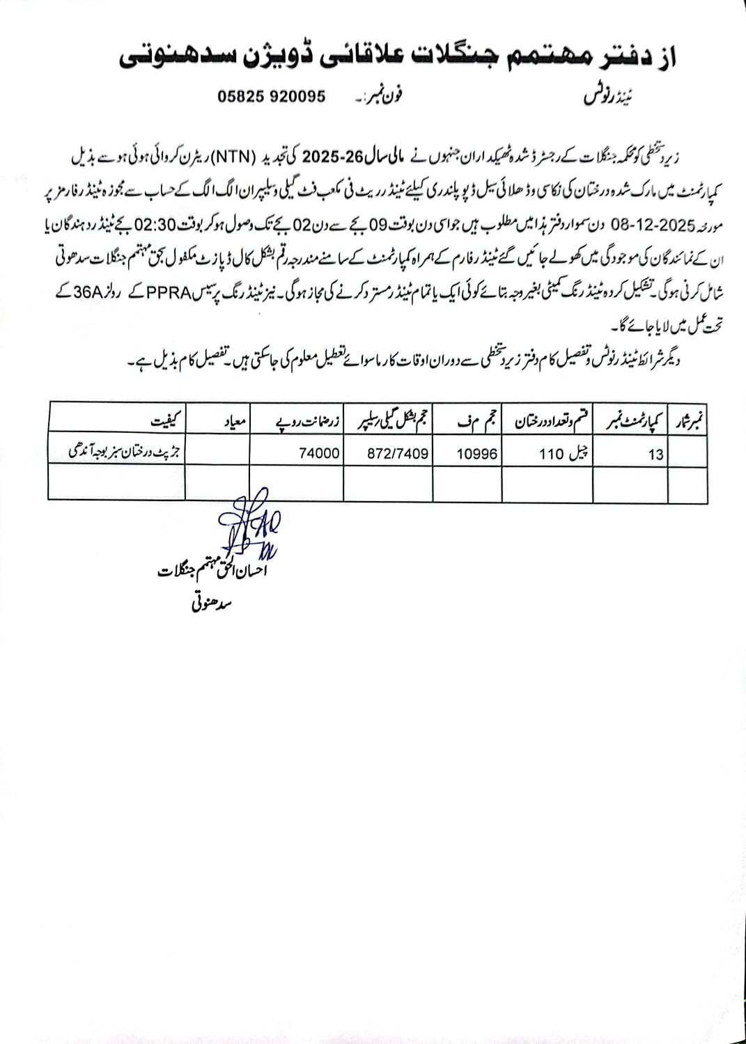13-08-2025 | 09-09-2025 | Close | Forest | Forest Muzaffarabad | Download File