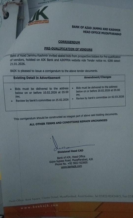 21-01-2026 | 20-02-2026 | Close | AJK BANK | BAJK | Download File