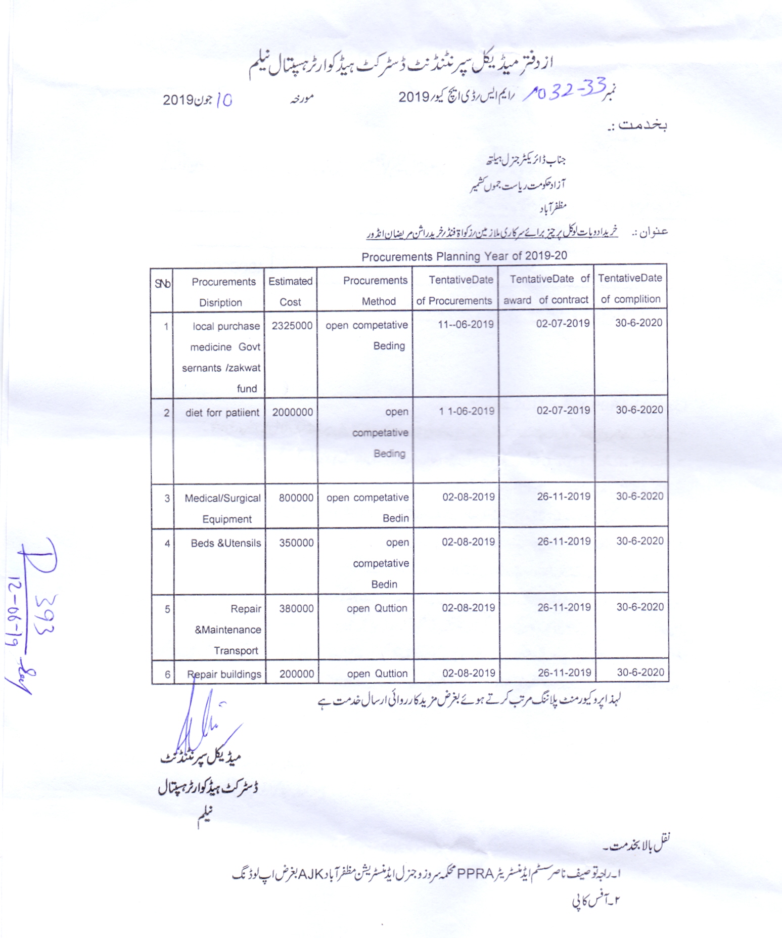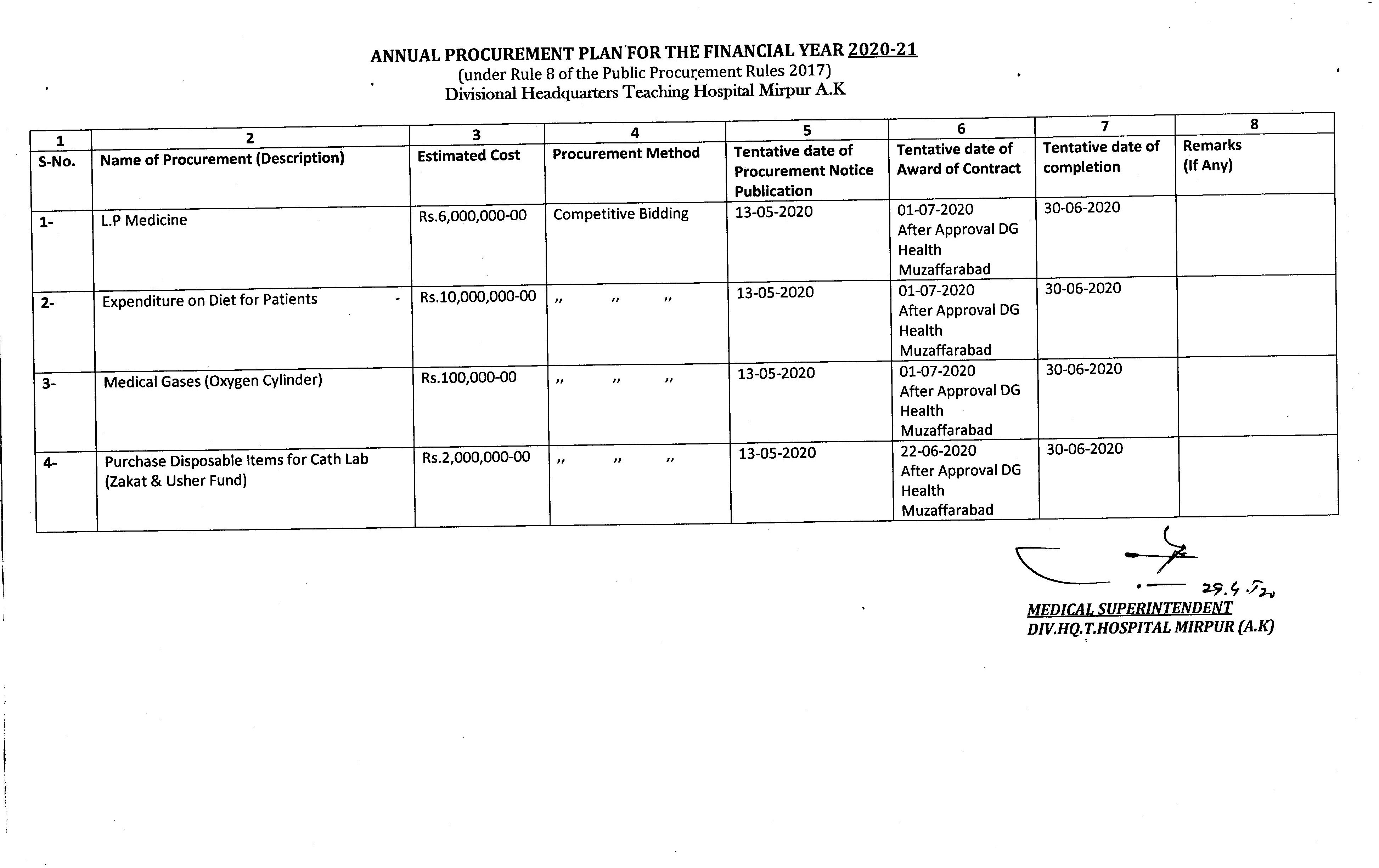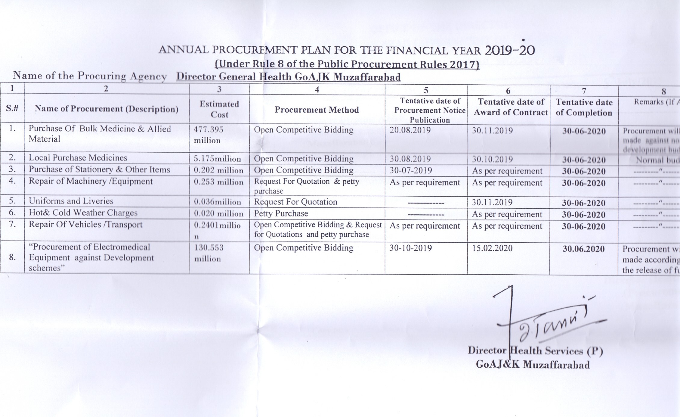 | Annual Procurement Plan (DG Health) | 2019-20 | Health Department | Health Muzaffarabad | Download File |