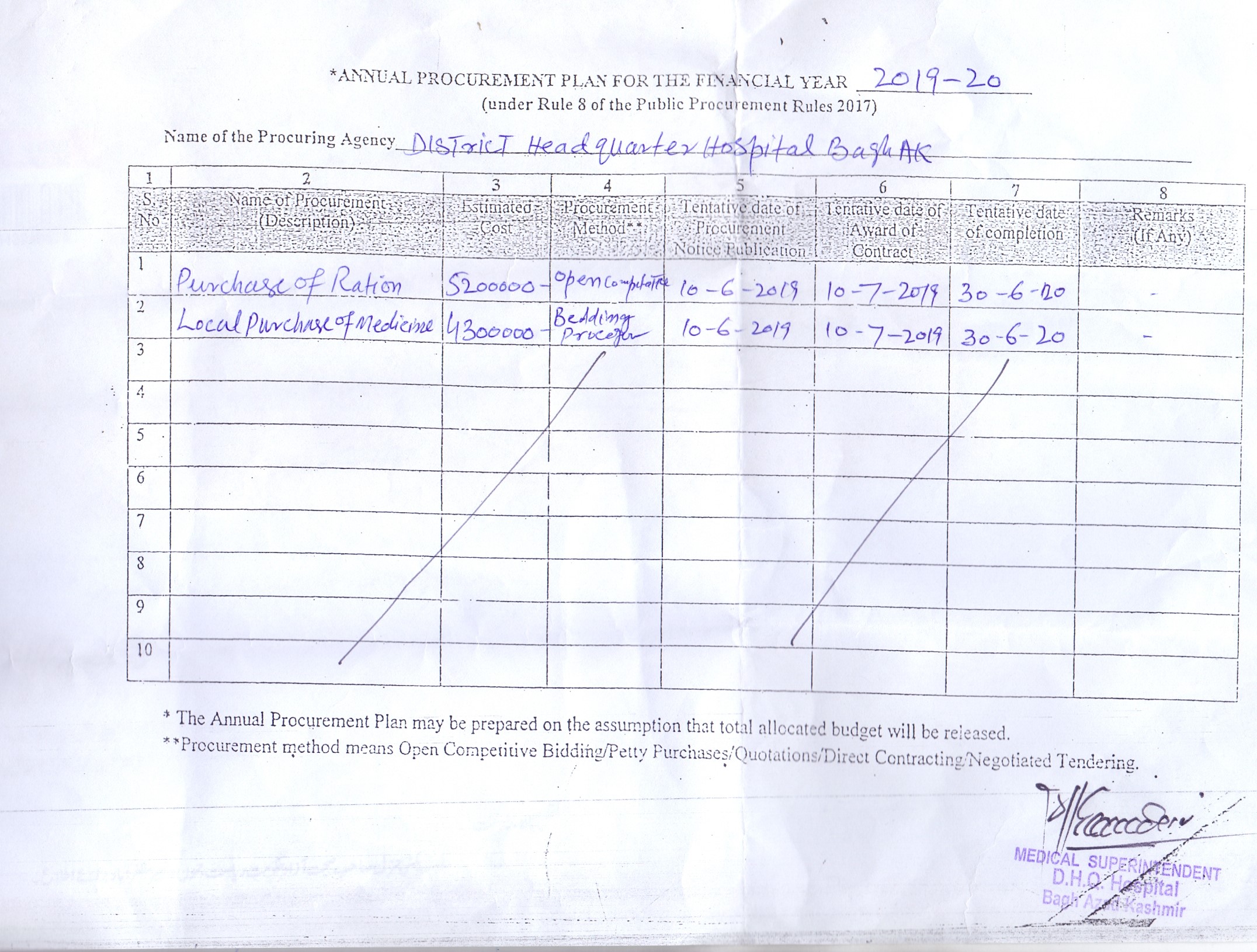 | Annual Procurement Plan (DHQH) | 2019-20 | Health Department | Health Bagh | Download File |