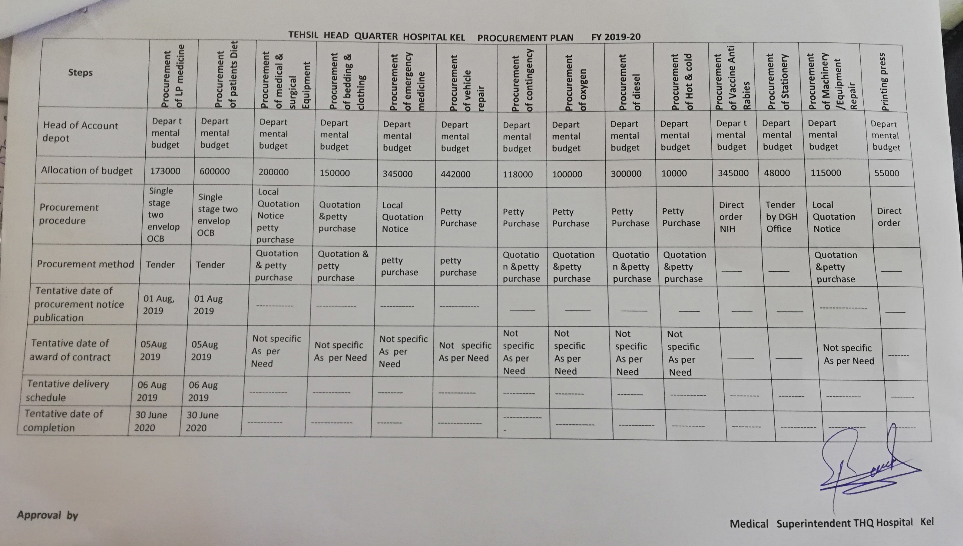 | Annual Procurement Plan (THQ Kel) | 2019-20 | Health Department | Health Neelum | Download File |
