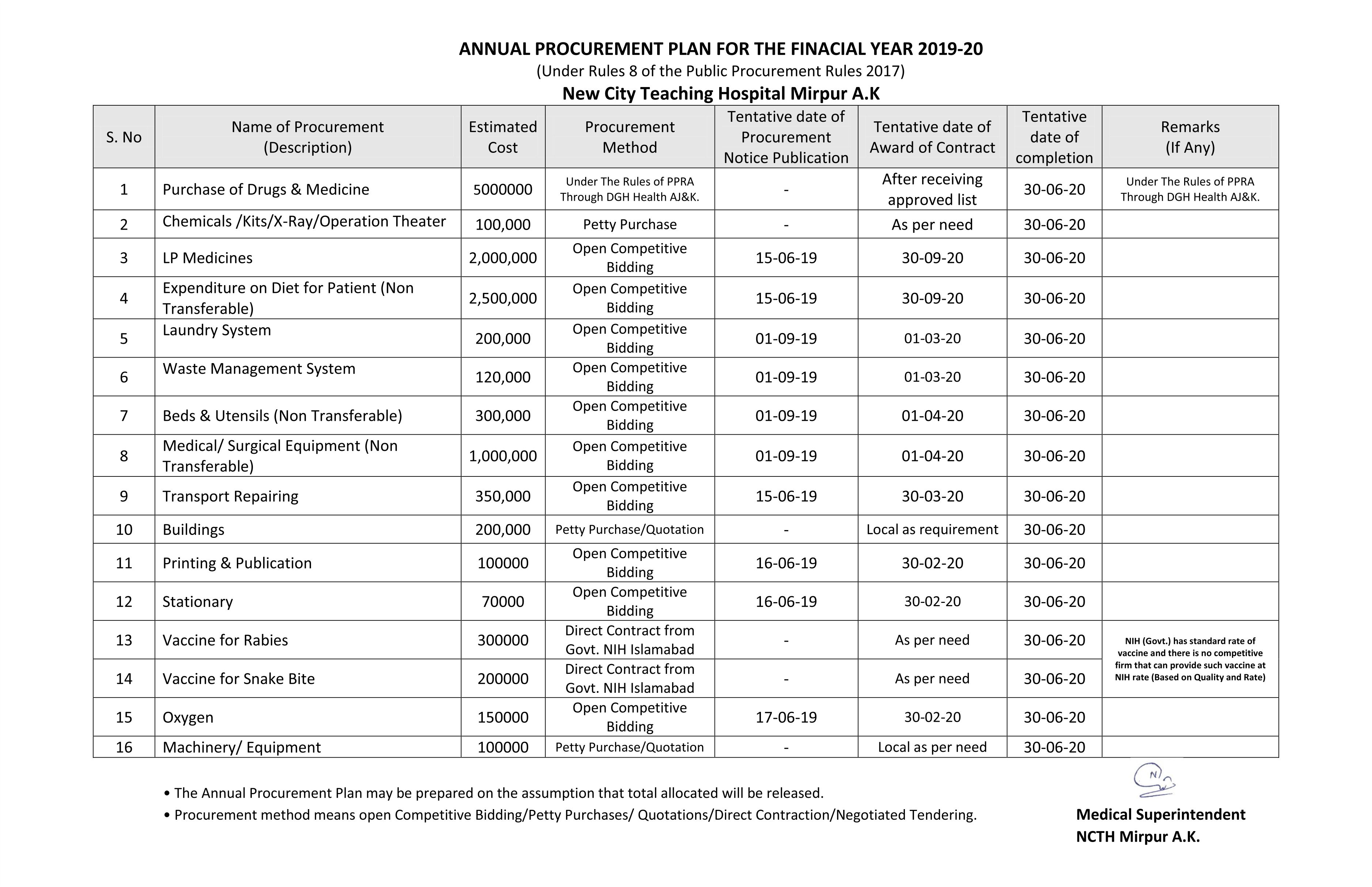 | Annual Procurement Plan (CMH Rawalakot) | 2019-20 | Health Department | Health Poonch | Download File |