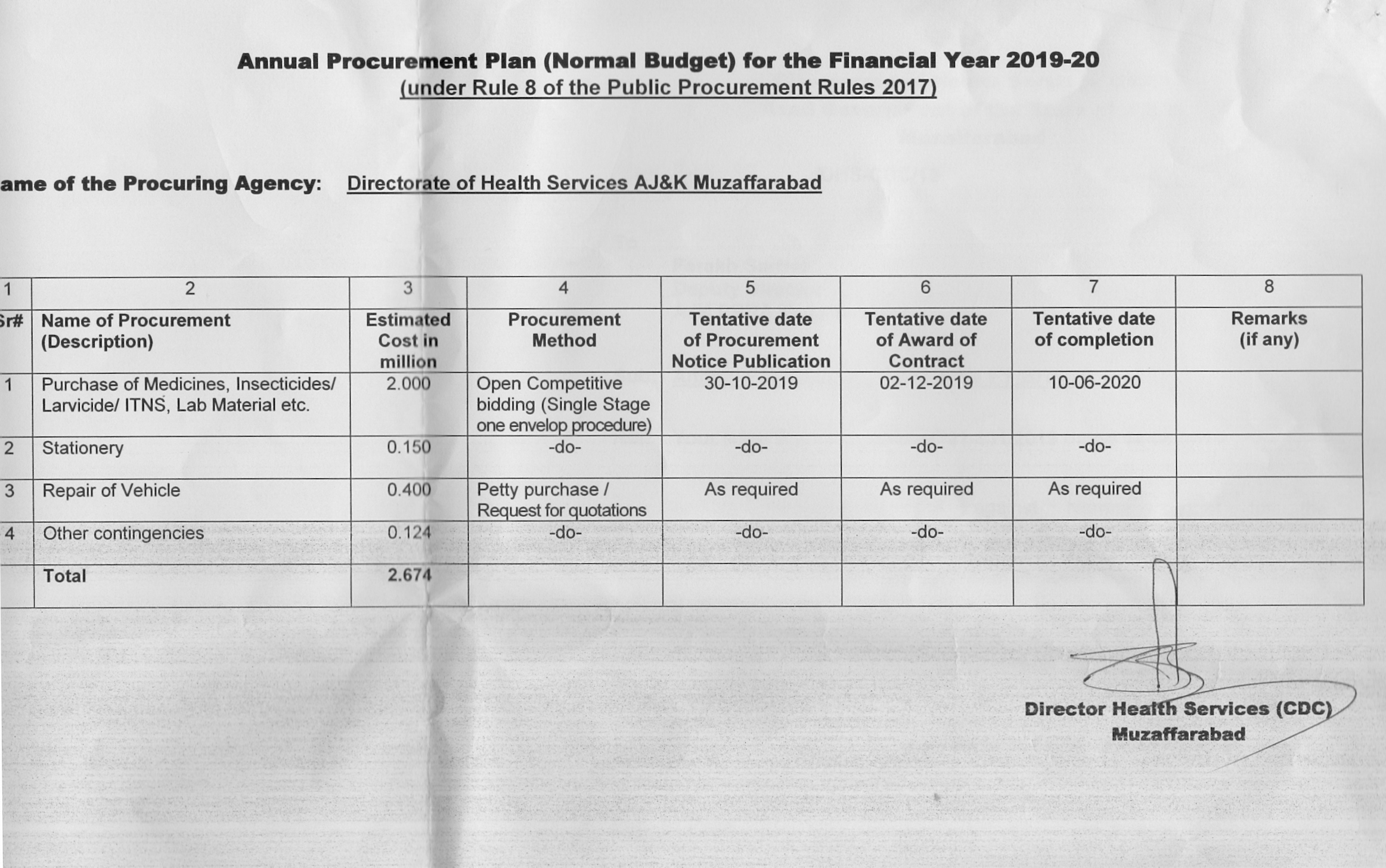 | Annual Procurement Plan (CDC) | 2019-20 | Health Department | Health Muzaffarabad | Download File |