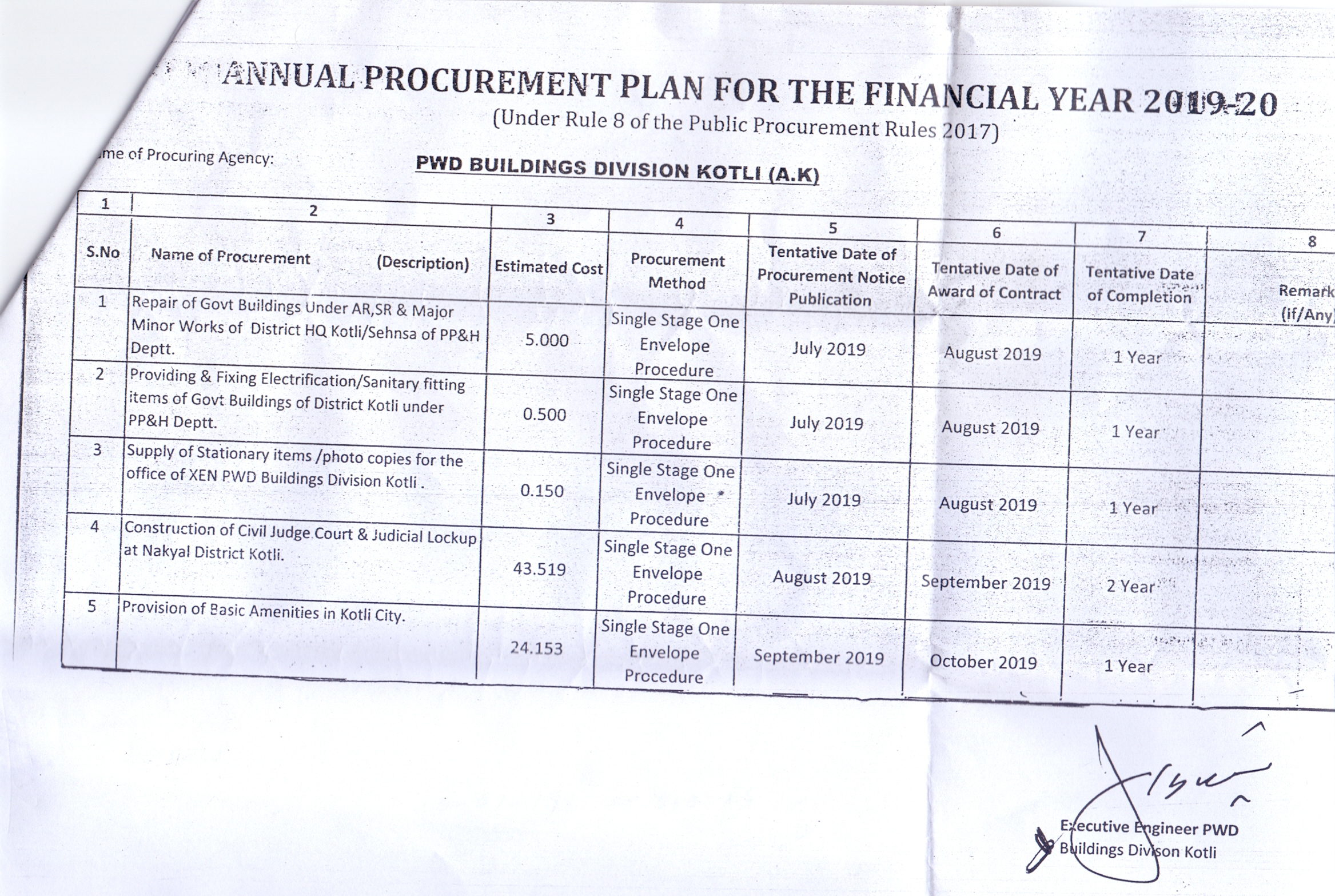| Annual Procurement Plan (Buildings Division) | 2019-20 | PP&H | PP&H Kotli | Download File |