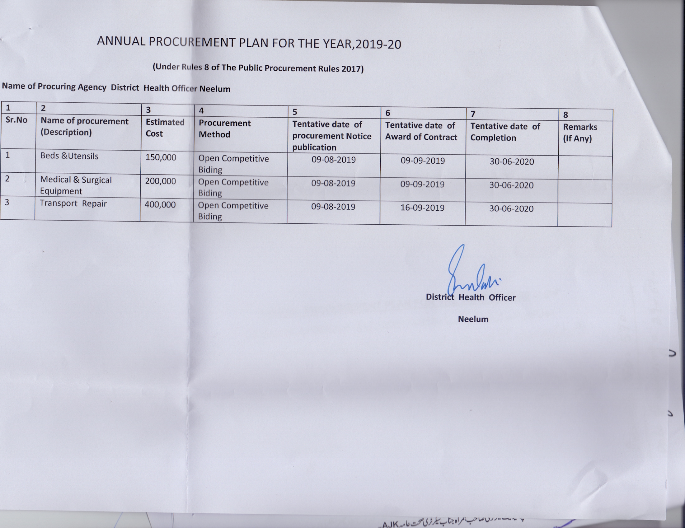 | Annual Procurement Plan (DHO) | 2019-20 | Health Department | Health Neelum | Download File |
