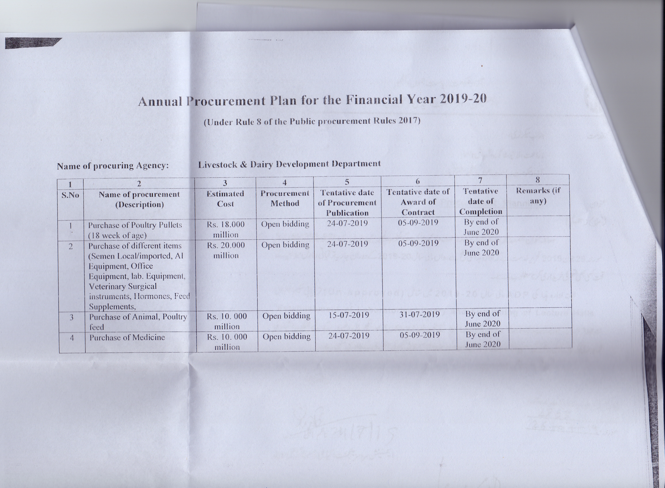 | Annual Procurement Plan | 2019-20 | Agriculture | Live Stock Muzaffarabad | Download File |