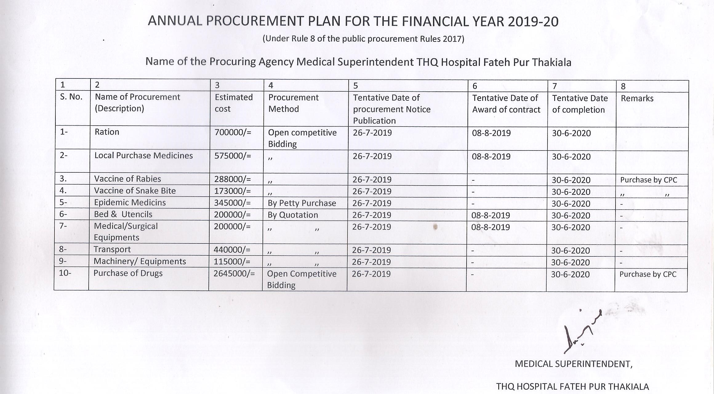 | Annual Procurement Plan (THQH Fatehpur Thakiala) | 2019-20 | Health Department | Health Kotli | Download File |