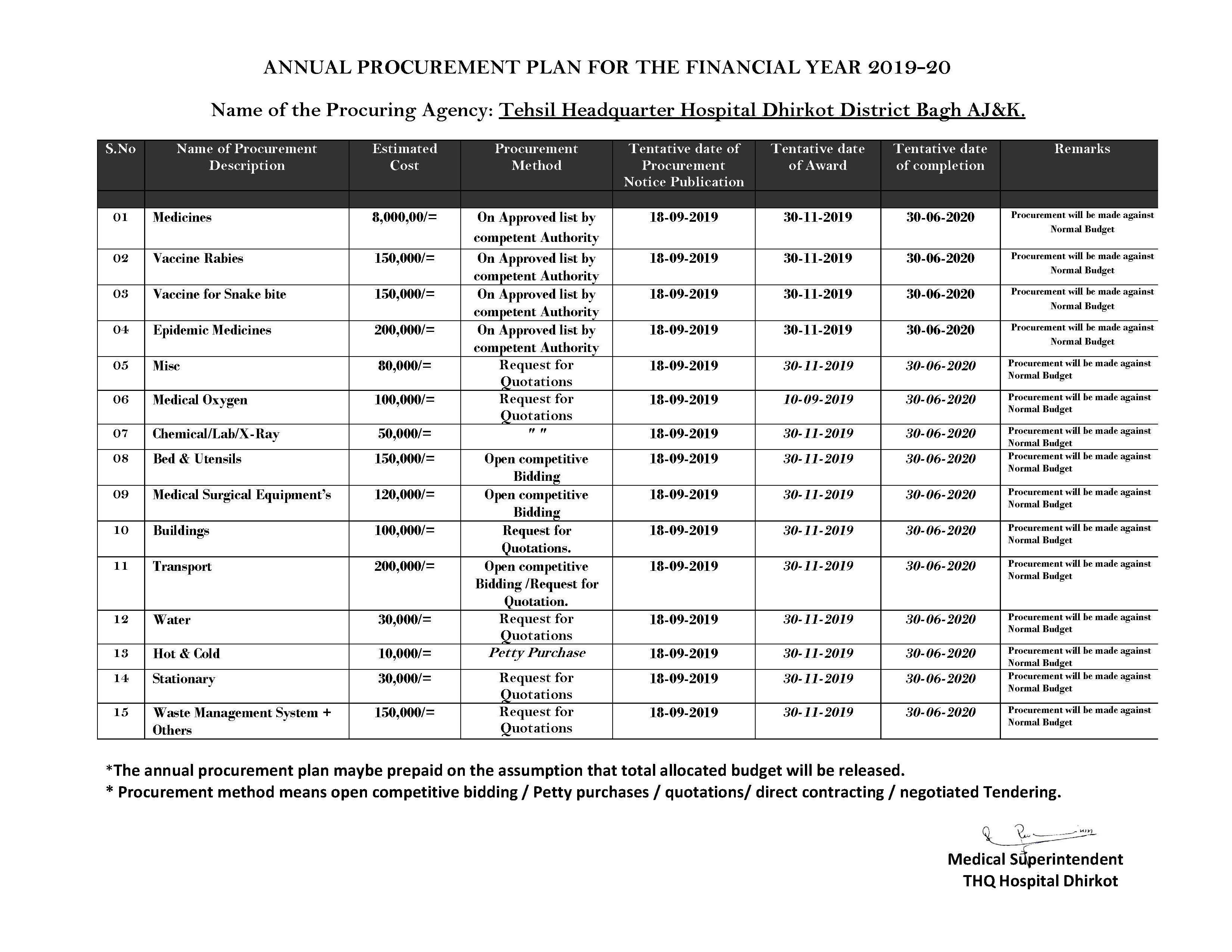| Annual Procurement Plan (THQH Dhirkot) | 2019-20 | Health Department | Health Bagh | Download File |