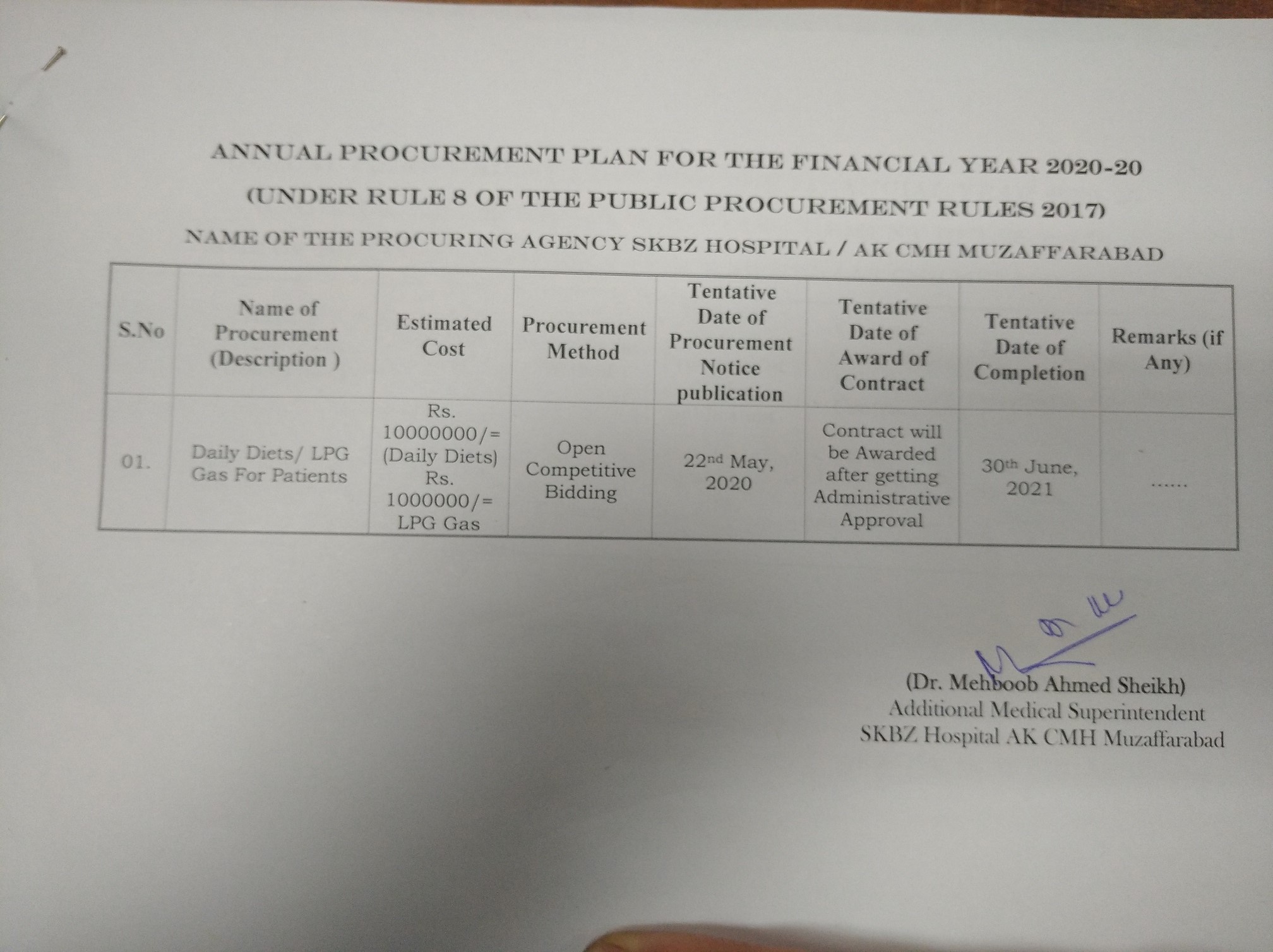 | Annual Procurement Plan (AIMS) | 2019-20 | Health Department | Health Muzaffarabad | Download File |