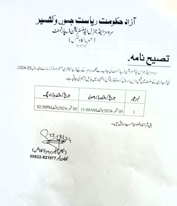 13-09-2024 | 03-10-2024 | Close | Printing and Stationary | Printing and Stationary Muzaffarabad | Download File