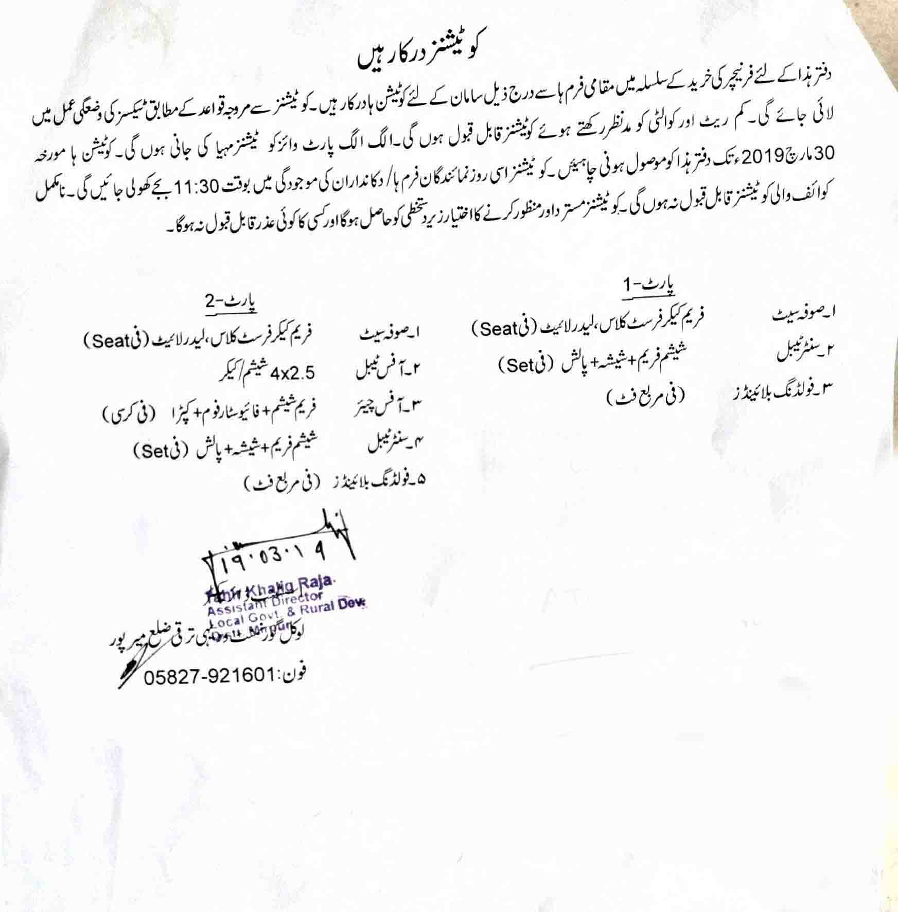 19-03-2019 | 30-03-2019 | Close | LG&RD | LG&RD Mirpur | Download File |