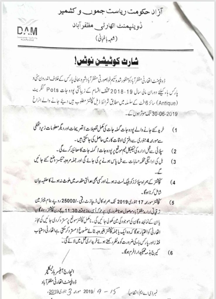 09-01-2019 | 26-01-2019 | Close | Development Authorities | Development Authority Muzaffarabad | Download File |