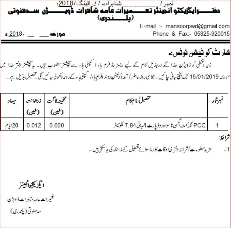 10-01-2019 | 25-01-2019 | Close | C&W | Highways Division Bhimber | Download File |