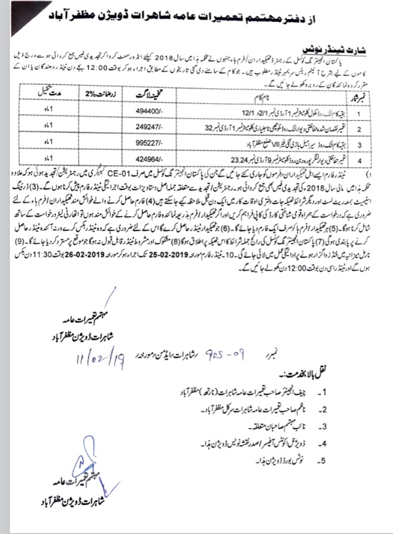 04-02-2019 | 19-02-2019 | Close | C&W | Highways Division Muzaffarabad | Download File |