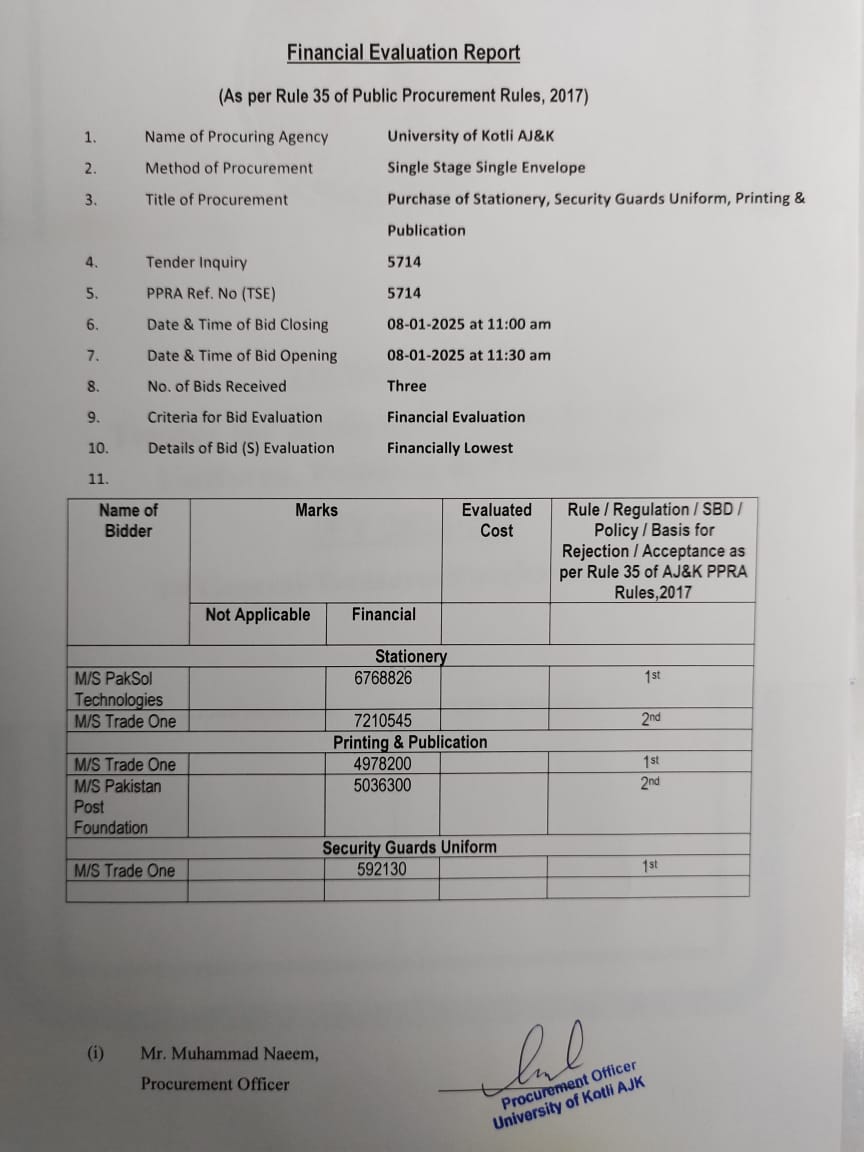 20-12-2024 | 08-01-2025 | Close | Education Department | University of Kotli | Download File