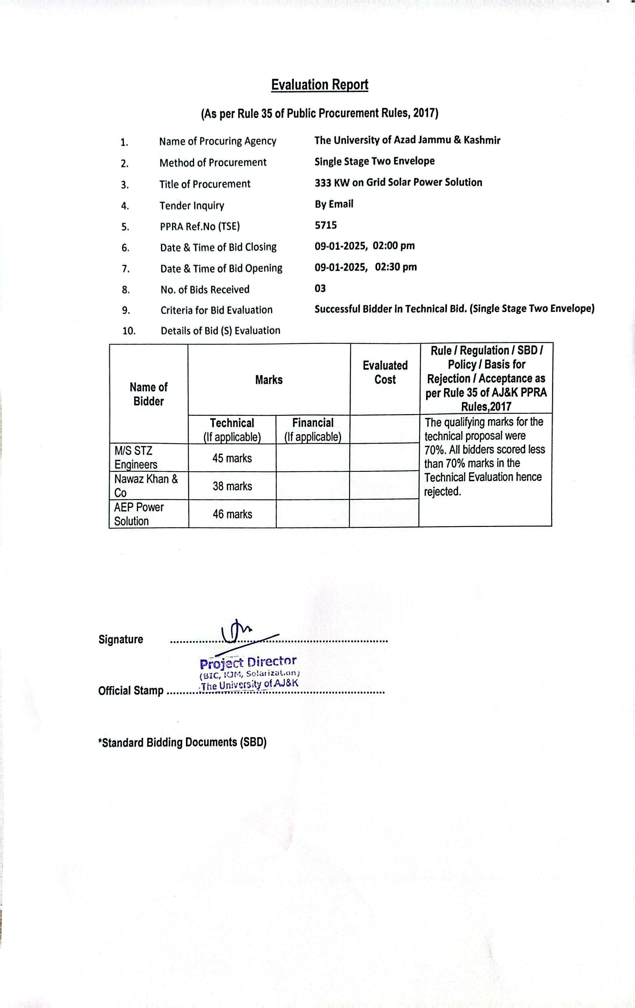 Corrigendum Bid Evaluation Award of Contract |