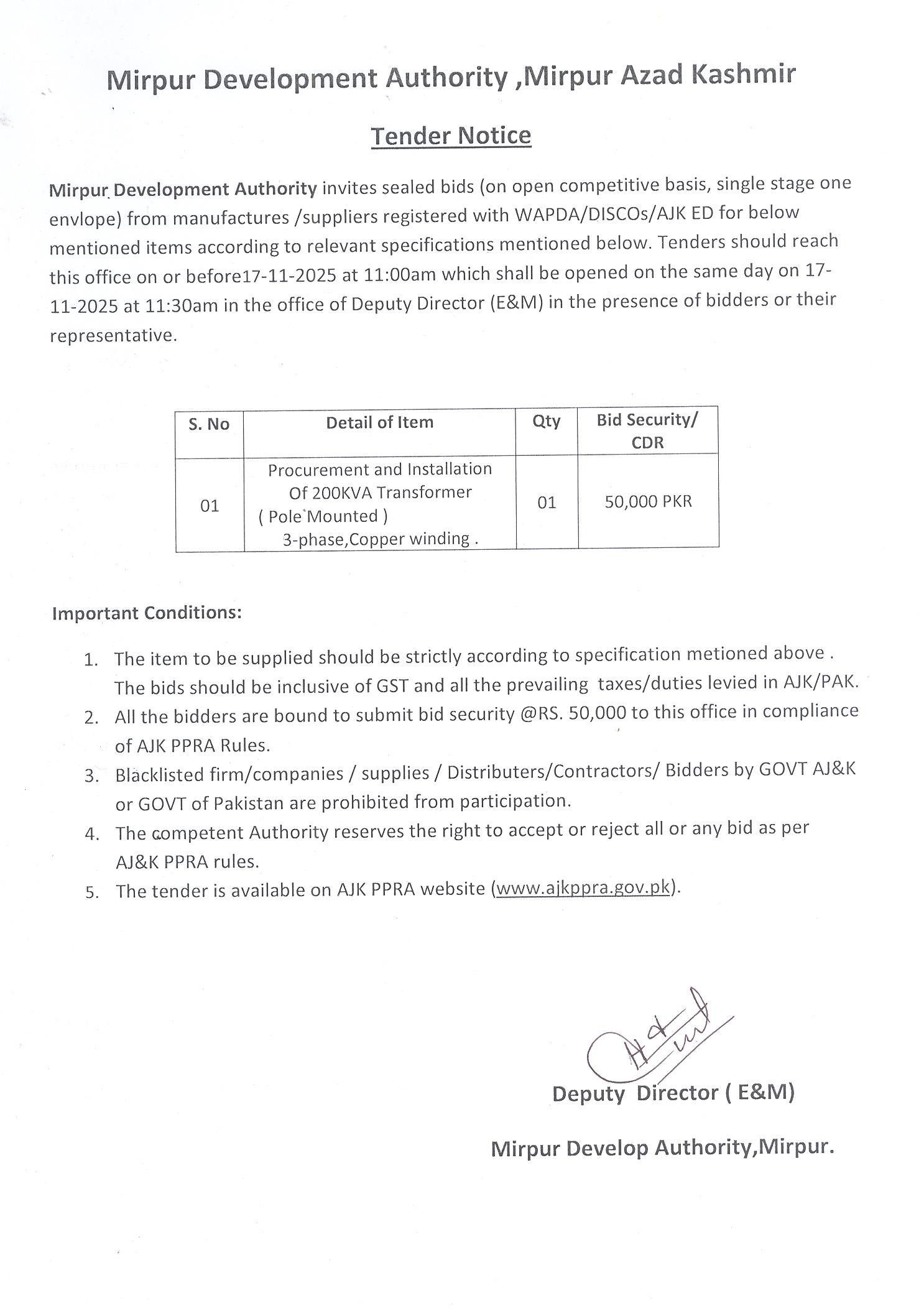 19-11-2025 | 16-12-2025 | Close | Development Authorities | Mirpur Development Authority | Download File |