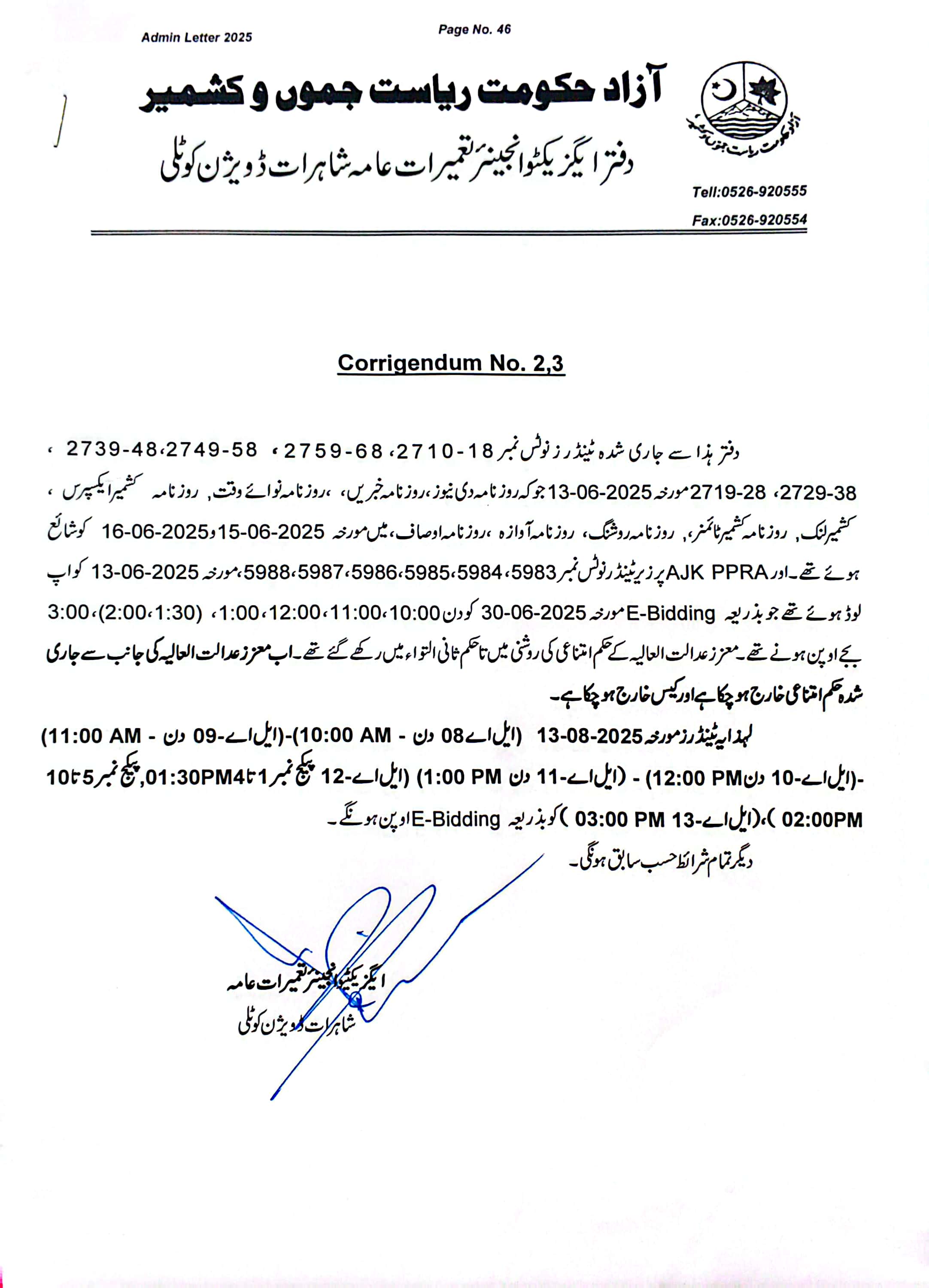 02-06-2025 | 19-06-2025 | Close | C&W | Highways Division Muzaffarabad | Download File